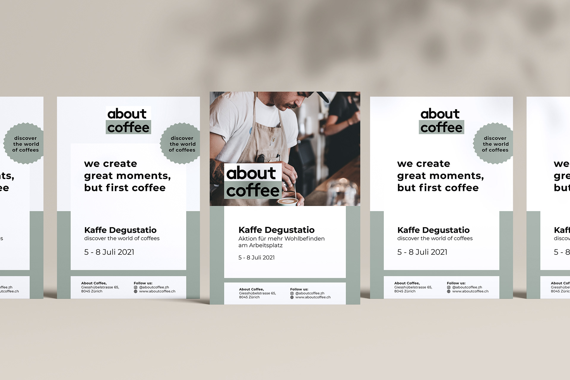 A meeting place about the world of coffee. Brand concept and design, implementation of corporate design; stationery, flyer concept, poster concept, social media concept and packaging design for the in-house coffee roastery.