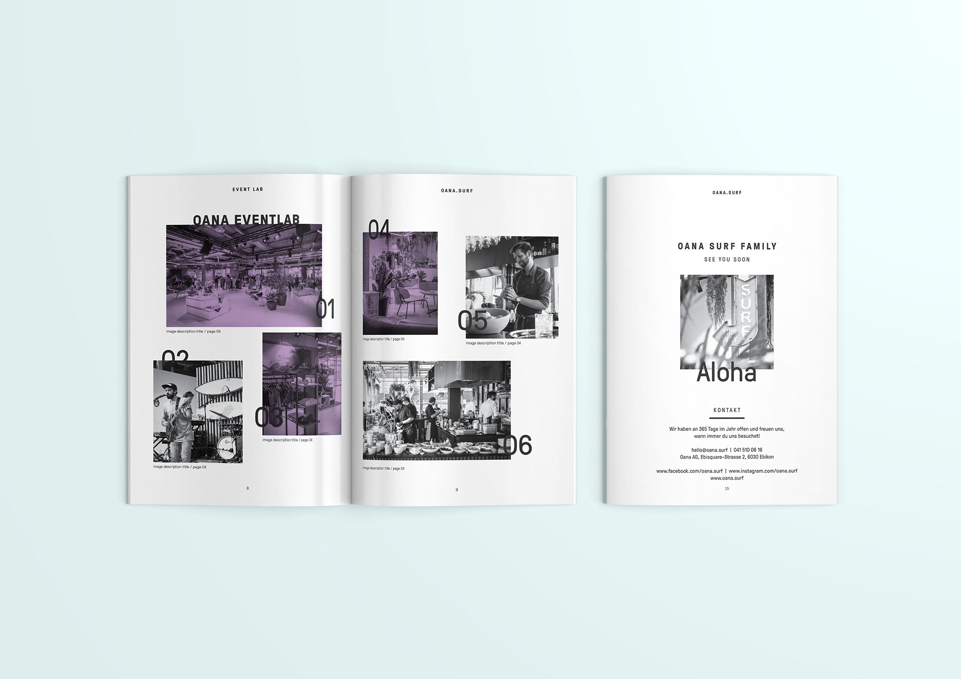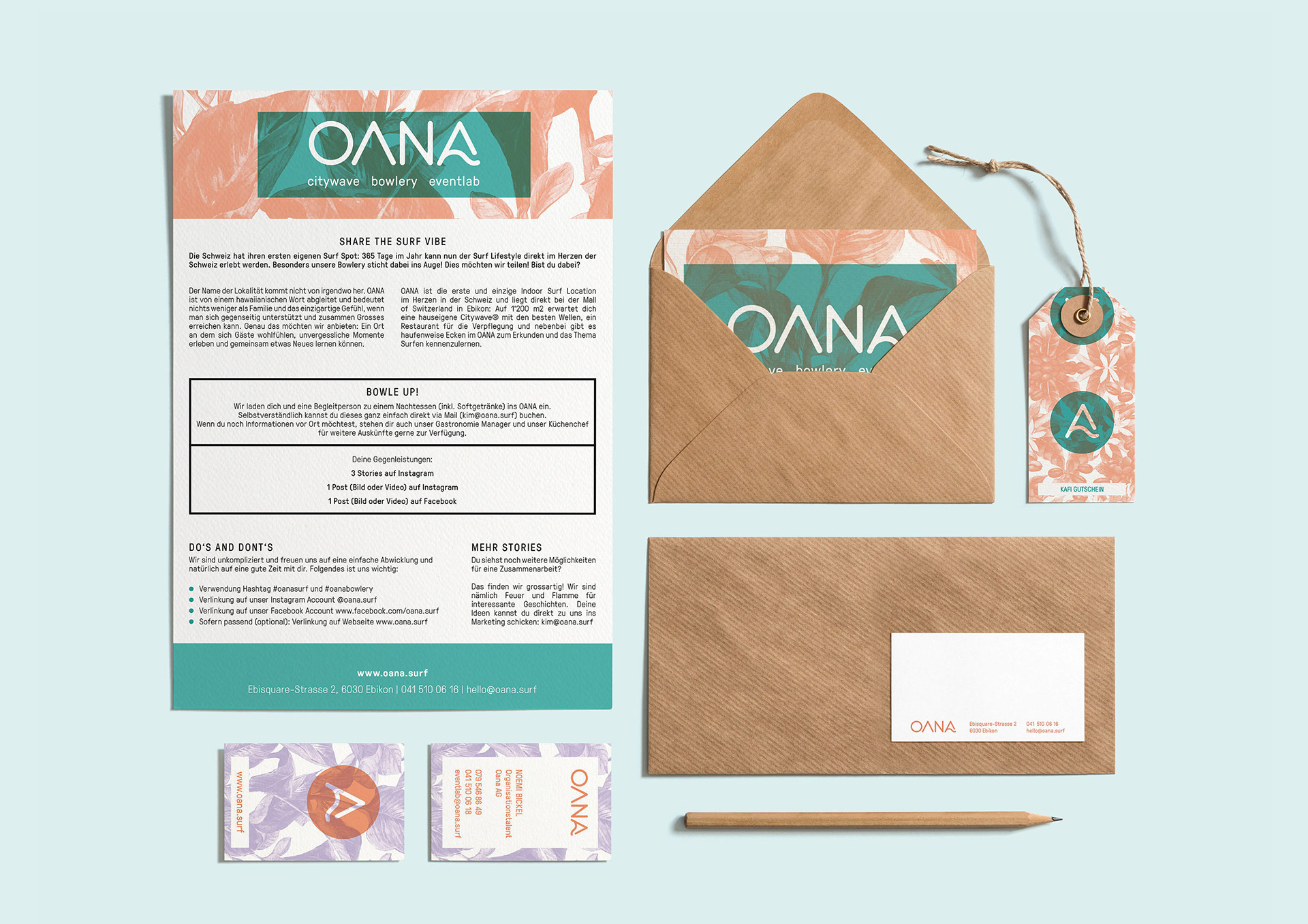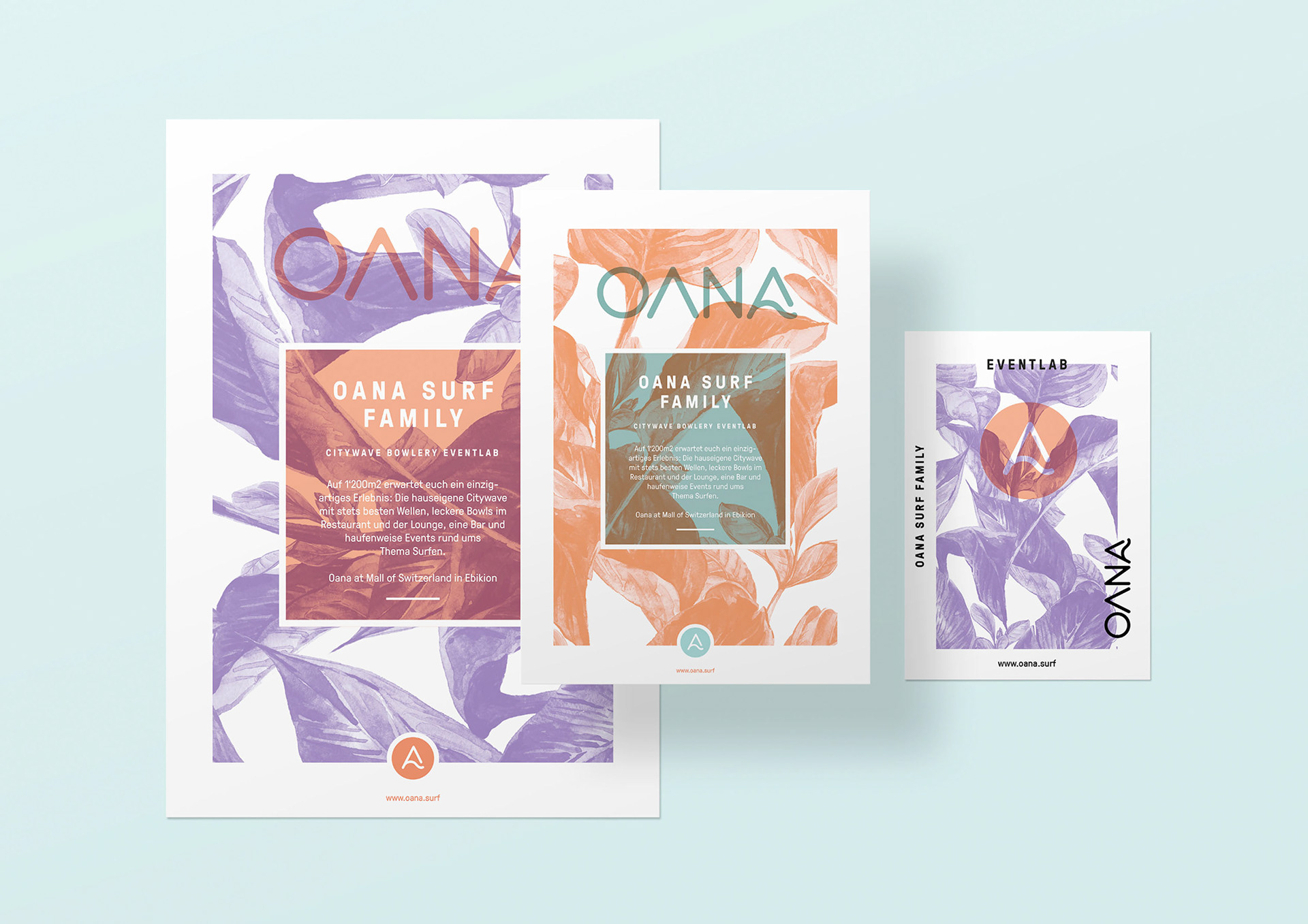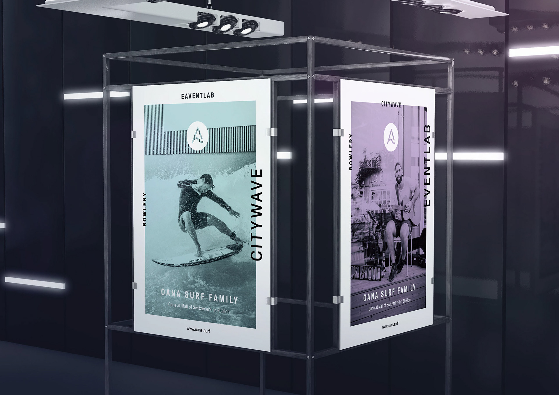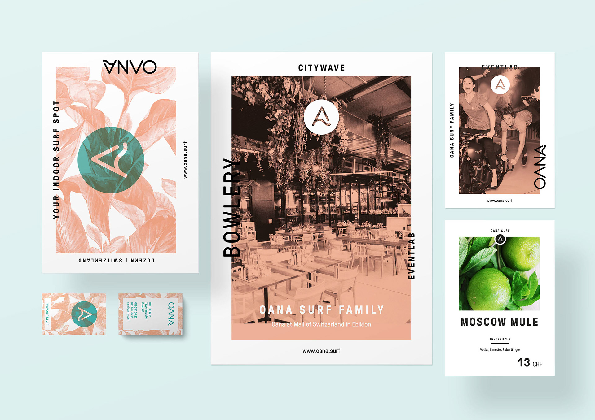 Oana - Citywave, Bowlery & Eventlab First surf location in the middle of Switzerland. Brand concept & design, implementation corporate design (stationery, flyer concept, poster concept, event magazine, sticker, shirt). Packaging for bowlery, coffee, wine. Art Direction for Campaigns and Opening Ceremony.